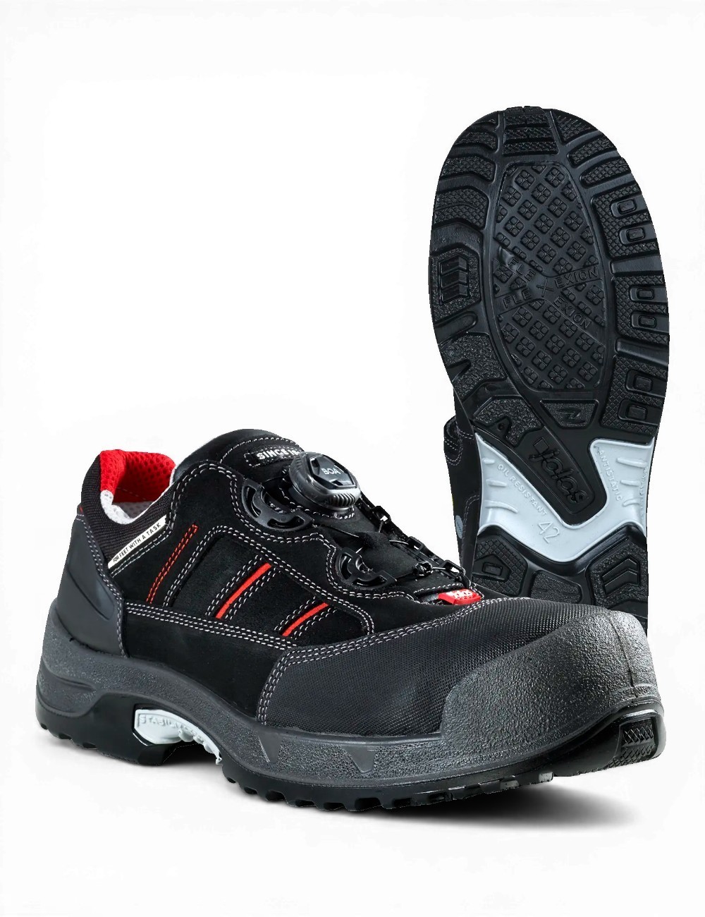 - Antystatyczność i zgodność z ESD - buty spełniają wymagania IEC 61340-5-1, dzięki czemu pomagają ograniczać wyładowania elektrostatyczne.