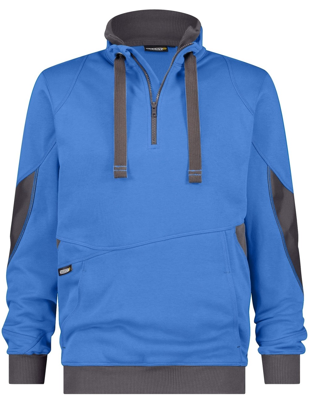 Bluza robocza Dassy Stelar to wyjątkowa propozycja na chłodne dni. Materiał jest przyjemny dla skóry, a jednocześnie trwały, dzięki zastosowaniu bawełny oraz poliestru. Wstawki z Cordury zastosowane w miejscach narażonych na szybsze zużycie zwiększają żywotność produktu. Solidne dwuigłowe szwy w kontrastowym kolorze dodatkowo zabezpieczają przed rozdarciami. Ten model bluzy do pracy ma podwójny kołnierz z wewnętrzną warstwą z dzianiny. Jest zapinany na zamek błyskawiczny, a jednocześnie regulowany sznurkiem - doskonale zabezpieczysz kark i szyję przed przewianiem. Ściągacze z dzianiny zapewniają idealne dopasowanie. Bluza Dassy ma wyjątkowo funkcjonalne kieszenie. Duża kieszeń typu kangur w przedniej części, a także bezpieczna kieszonka po boku bluzy pomieszczą najważniejsze drobiazgi. Z przodu bluzę ozdobiono detalem z logo marki. Ten model bluzy sprawdzi się jako odzież robocza niezależnie od wykonywanej pracy. Casualowy design sprawia, że wykorzystasz ją także podczas aktywności i w wolnych chwilach. Materiał bluzy Stellar nadaje się do znakowania - możesz zamówić u nas bluzę z nadrukiem lub haftem z logo swojej firmy.