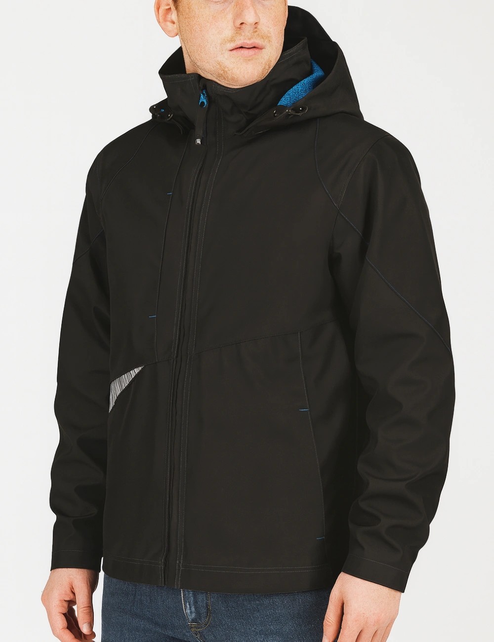 Zapinana na zamek błyskawiczny kostkowy YKK zabezpieczony przed deszczem. Osłona brody przed przycięciem zamkiem. Odpinany kaptur ściągany na troki. Przedłużany tył kurtki zapewnia lepszą ochronę pleców przed wiatrem i zimnem. Liczne kieszenie przydadzą się podczas pracy, m. in.: dwie kieszenie przednie zapinane na zamek, dodatkowo zapinana kieszeń na klatce piersiowej. Kurtka regulowana w pasie za pomocą ściągaczy. Produkt posiada również wkomponowane elementy odblaskowe dla lepszej widoczności po zmroku lub podczas ograniczonej widoczności.