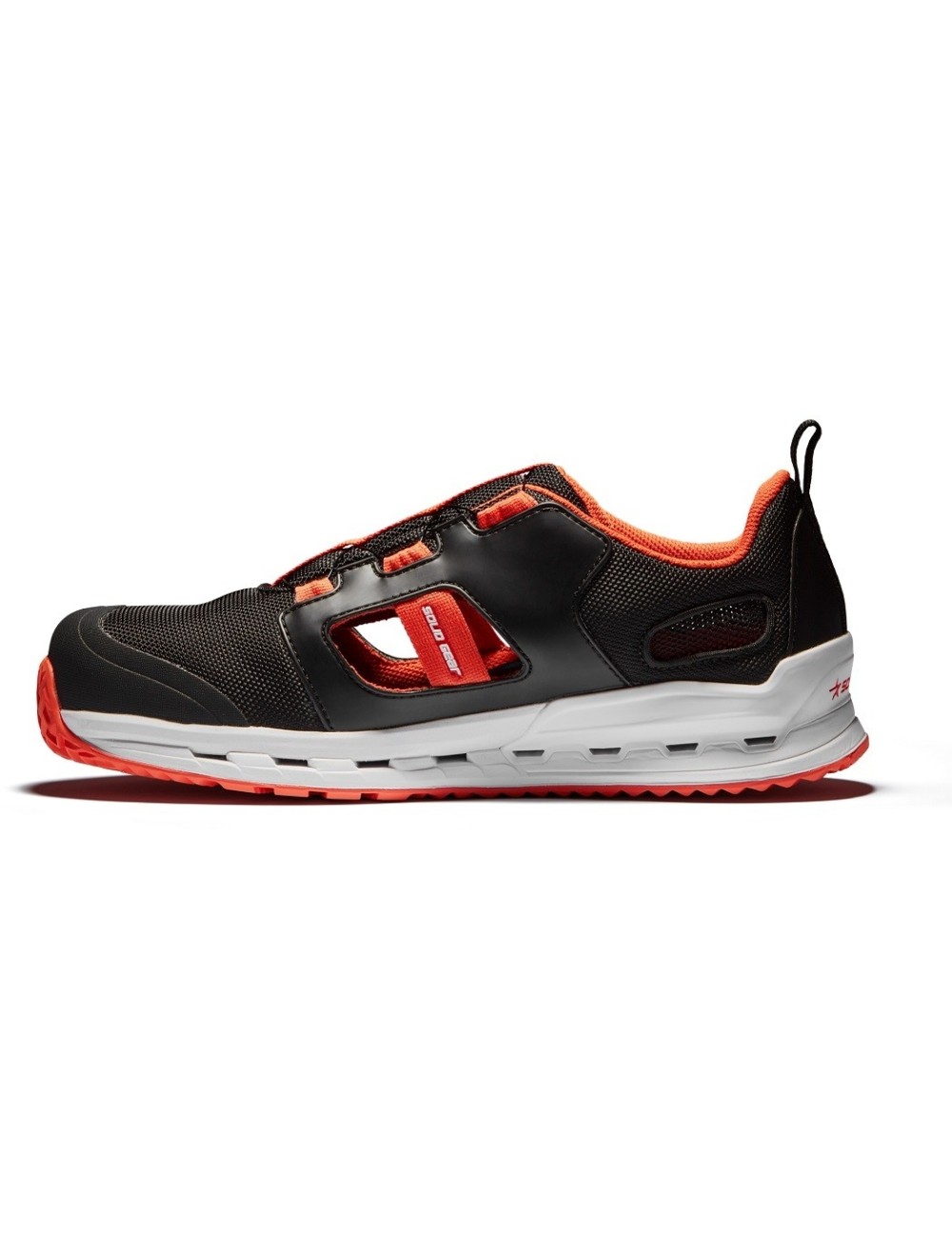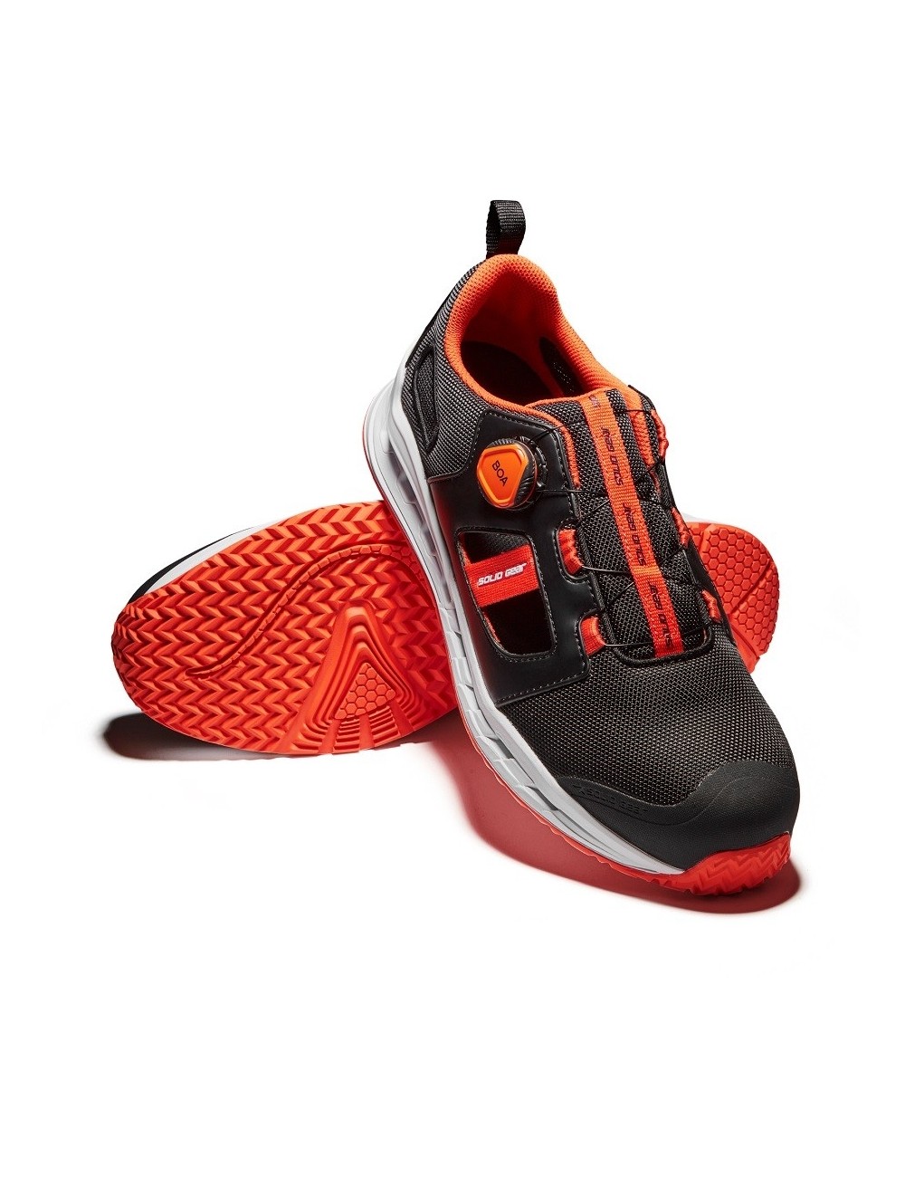 Półbuty robocze Tempest renomowanego producenta Solid Gear zapewniają 360° oddychalności, dzięki zastosowanej technologii Hive Technology, która umożliwia przepływ powietrze również przez podeszwę. Wilgoć odprowadzana jest za pomocą kanalików powietrznych umiejscowionych w podeszwie. Model ten wyposażony jest we wstawki z samej siateczki oraz bez niej, dzięki czemu jeszcze bardzie zwiększają przewiewność Półbuty robocze wyposażone są w ułatwiające wiązanie i zwiększający dopasowanie BOA® Fit System, który znajduje się na boku. Zastosowana w tym modelu pianka EVA o podwójnej gęstości, wraz z podpiętką TPU zapewnia świetną amortyzację i stabilność. Buty robocze wyposażone są w podnosek ochronny z włókna szklanego oraz wkładkę antyprzebiciową. Solid Gear Tempest są w kolorze czarnym z pomarańczowymi wstawkami. Dzięki sportowemu charakterowi spiszą się zarówno w pracy jak i na co dzień.